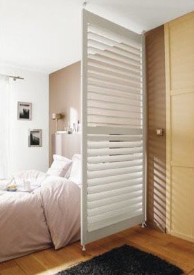 Idéale pour séparer un petit coin d’un grand espace, un coin nuit dans un studio par exemple, cette cloison amovible et toute simple à poser est parfaite. Elle permet de ne pas perdre de luminosité, mais elle apporte tout de même une certaine intimité. Pivotante, elle peut également jouer le rôle d’une porte.