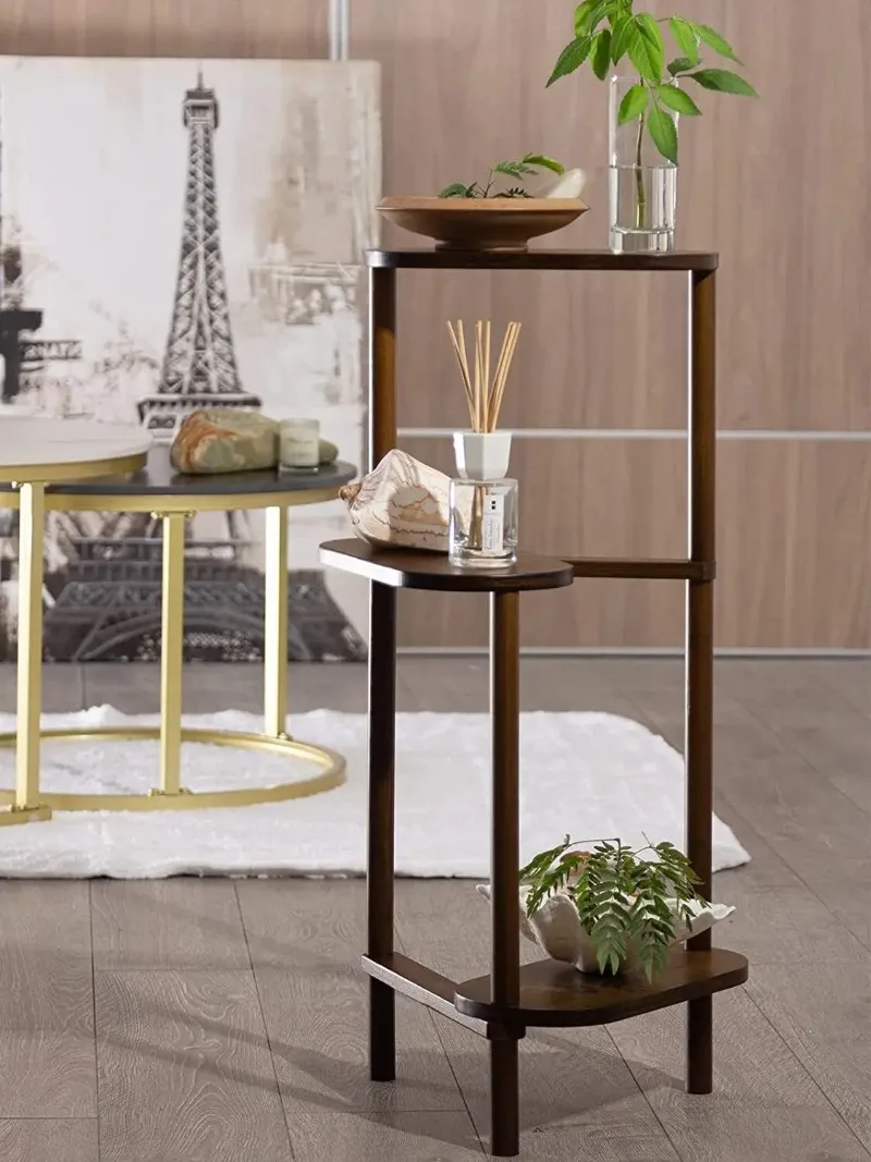Étagère d'angle haute à 3 niveaux en bambou pour plantes, support pour pots de fleurs, étagère de rangement pour balcon