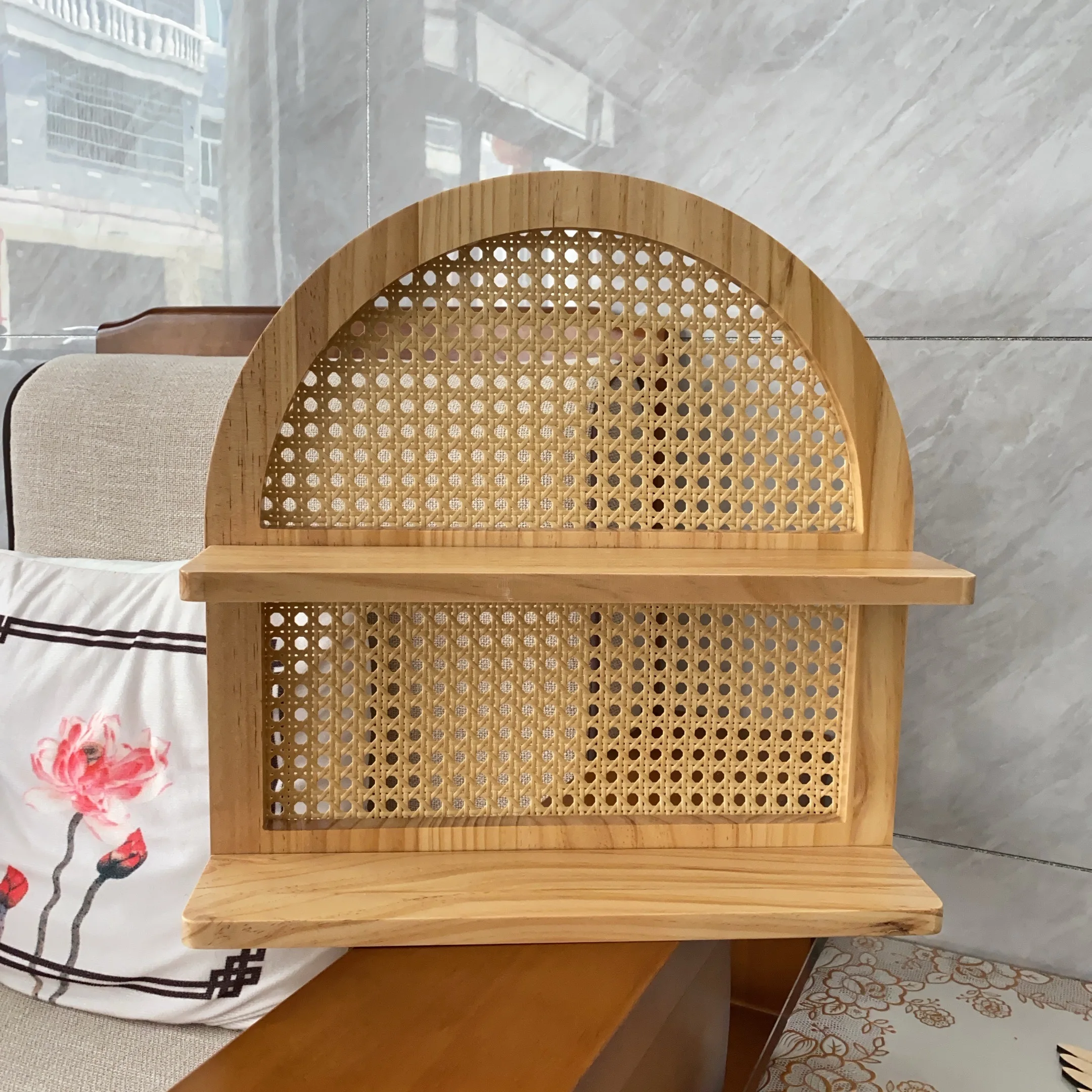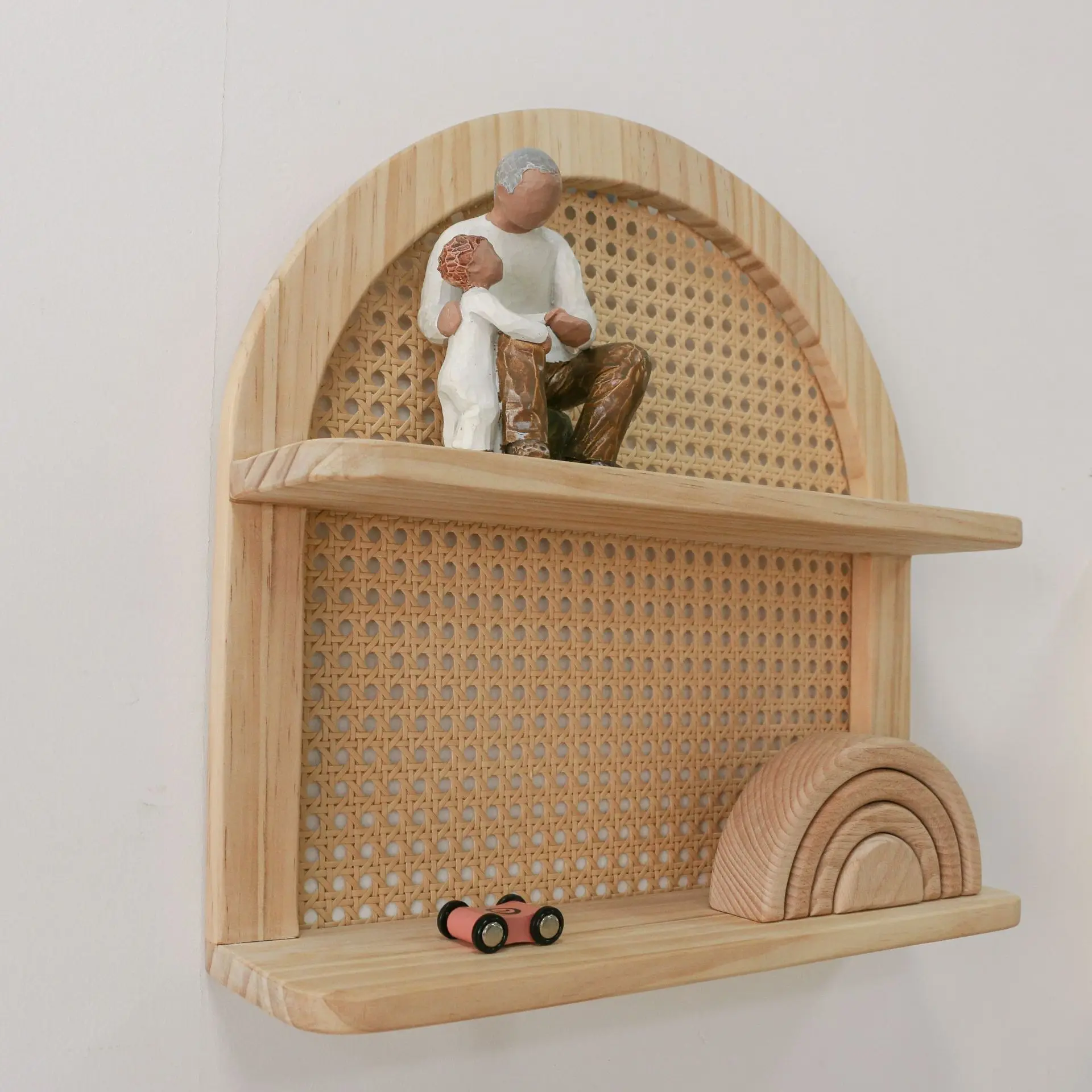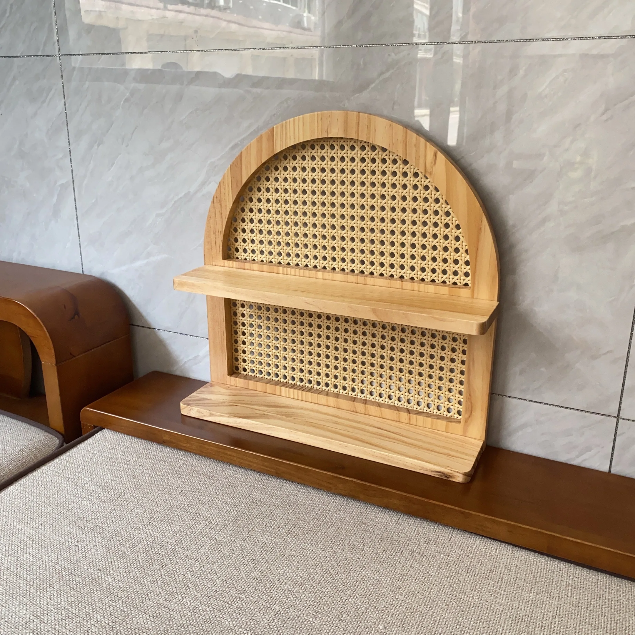 Et si tu offrais à tes murs une touche de poésie ? Imagine une pièce qui ne sert pas juste à ranger, mais qui t’invite à créer ton propre petit coin de paradis. Avec sa forme en arche douce et son cannage artisanal, cette étagère est bien plus qu’un meuble : c’est une promesse d’évasion. Elle est pensée pour accueillir tes trésors, ce petit vase que tu aimes tant, tes lectures du moment ou les souvenirs qui te font sourire. C’est la pièce parfaite pour insuffler à ton intérieur une chaleur et un style qui n’appartiennent qu’à toi.