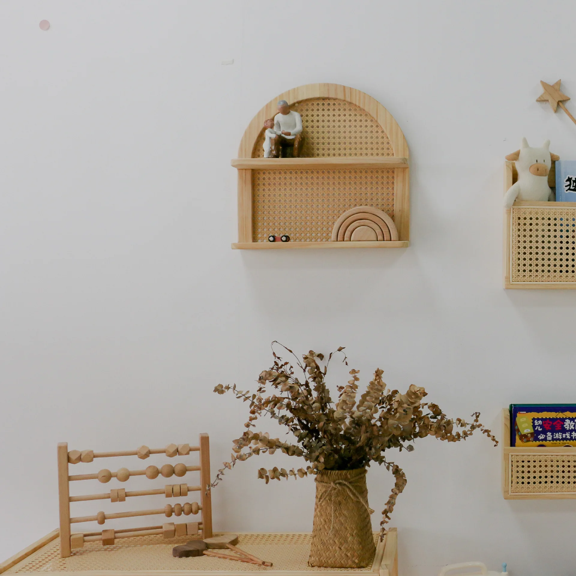 L’étagère en cannage qui raconte ton histoire.
