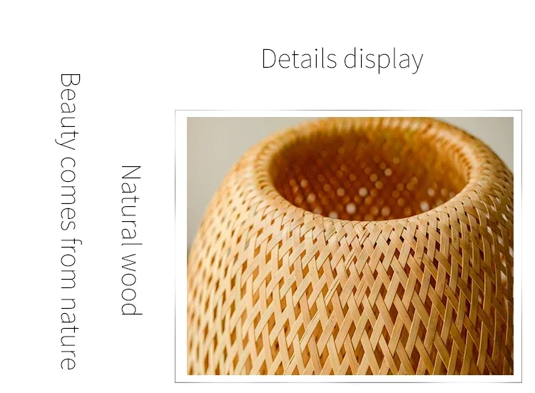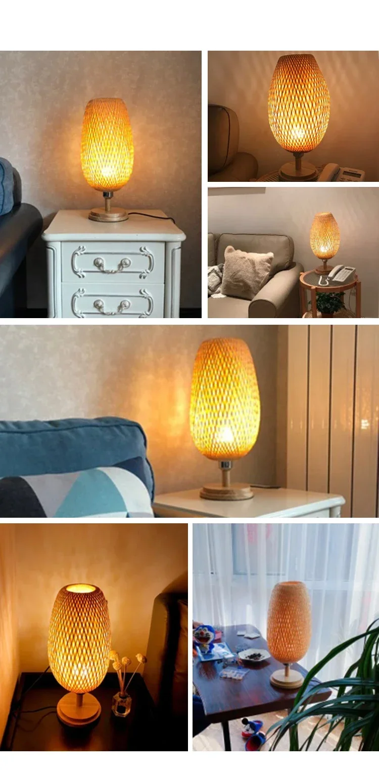 - Matériaux : abat-jour en bambou tressé à la main, base en bois naturel
