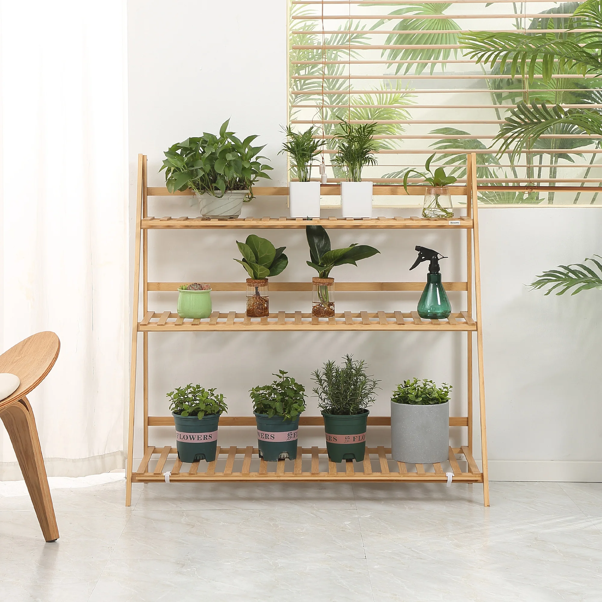 Étagère à plantes pliable en bambou à 3 niveaux Outsunny 100 x 39 x 97 cm