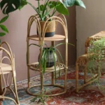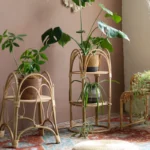 Le support arbore un style bohème chic et naturel, avec des formes organiques et élégantes qui s’intègrent parfaitement dans un intérieur ou sur un balcon.