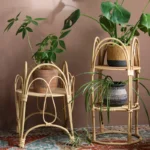 Ce support est fabriqué en rotin naturel ou en bambou tressé artisanalement, garantissant une touche authentique et chaleureuse à votre décoration.
