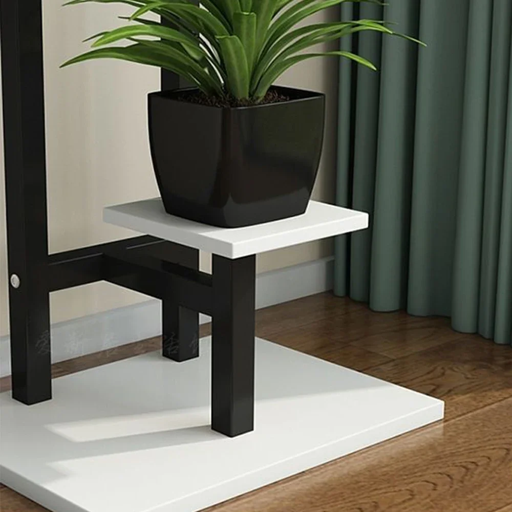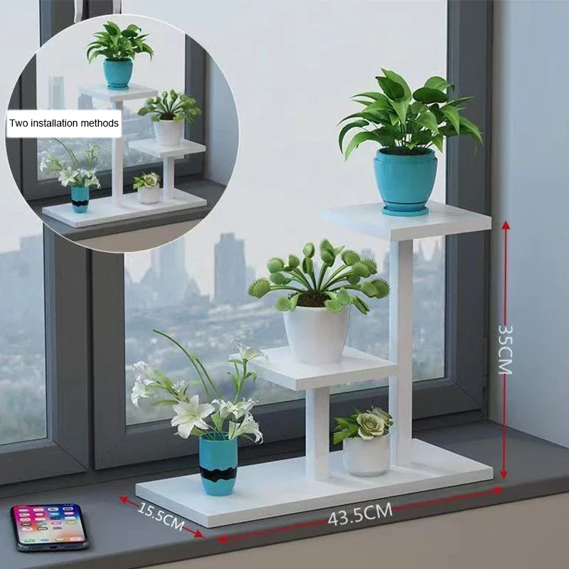 Le support est conçu avec quatre niveaux, permettant d’accueillir confortablement quatre pots de plantes différents, comme illustré.