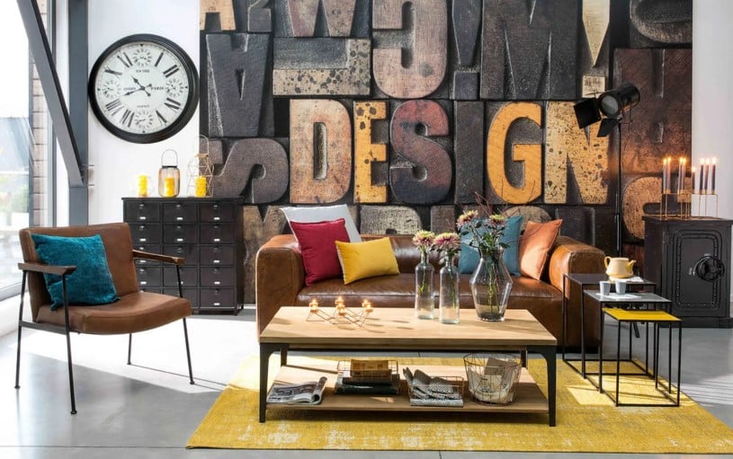 Les papiers peints trompe-l’œil sont également de la partie, imitant des murs aux pierres apparentes ou en briques. Meubles et objets déco se sont faits plus légers, plus sobres afin de s’intégrer à d’autres styles déco ou dans des plus petits appartements à l’architecture plus classique, mais ils conservent malgré tout cet esprit.